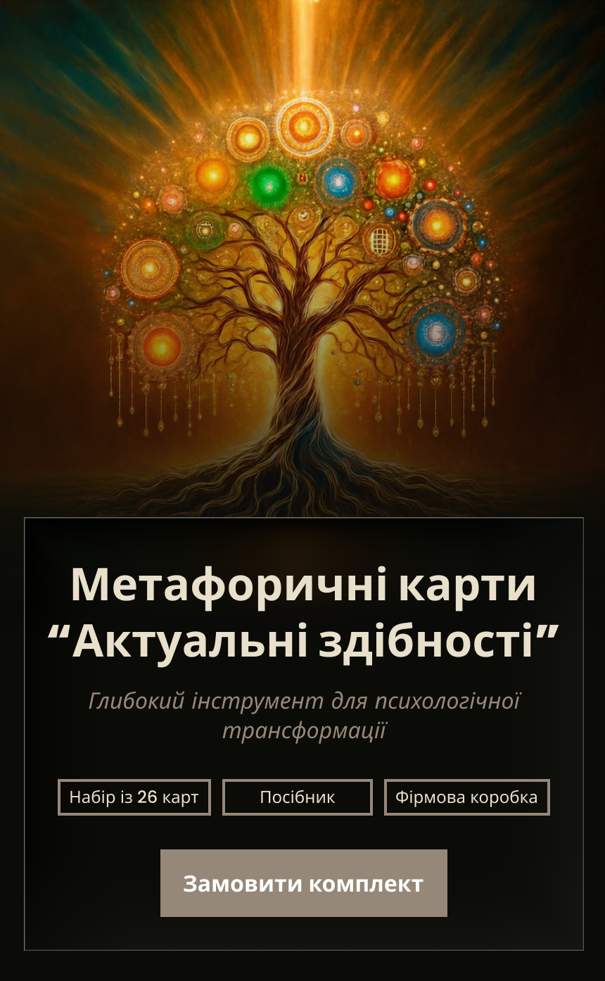 Метафоричні карти «Актуальні Здібності» — професійний інструмент для глибокої психотерапії та коучингу, що допомагає людині пізнати себе, свої ресурси, здібності та опори.